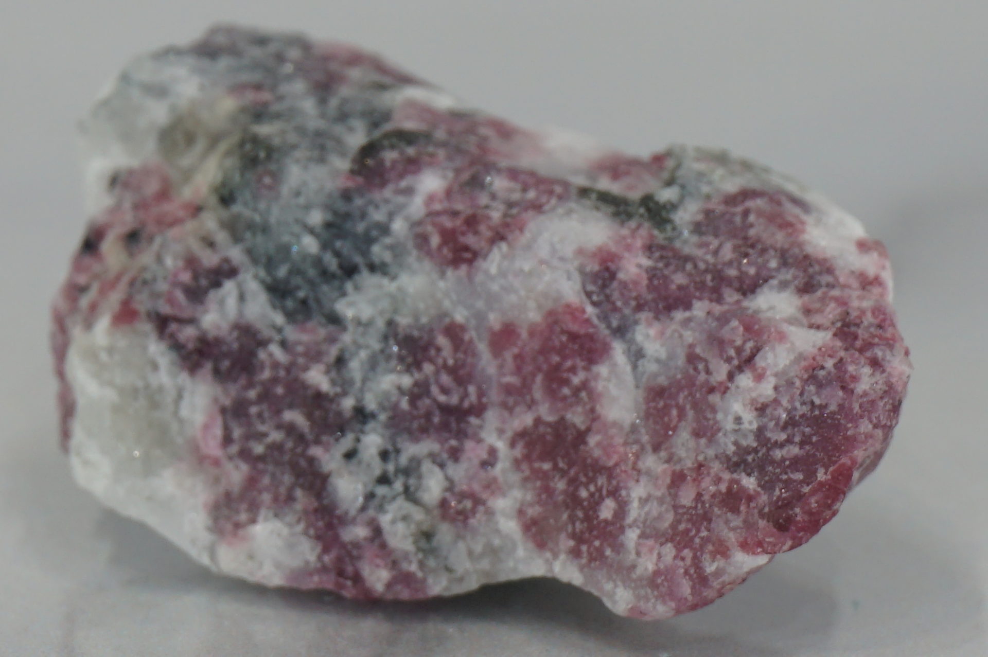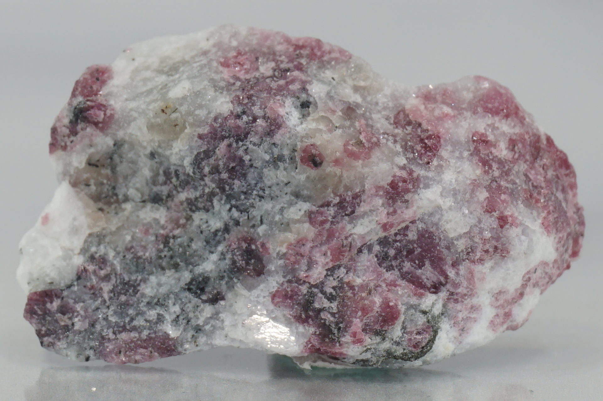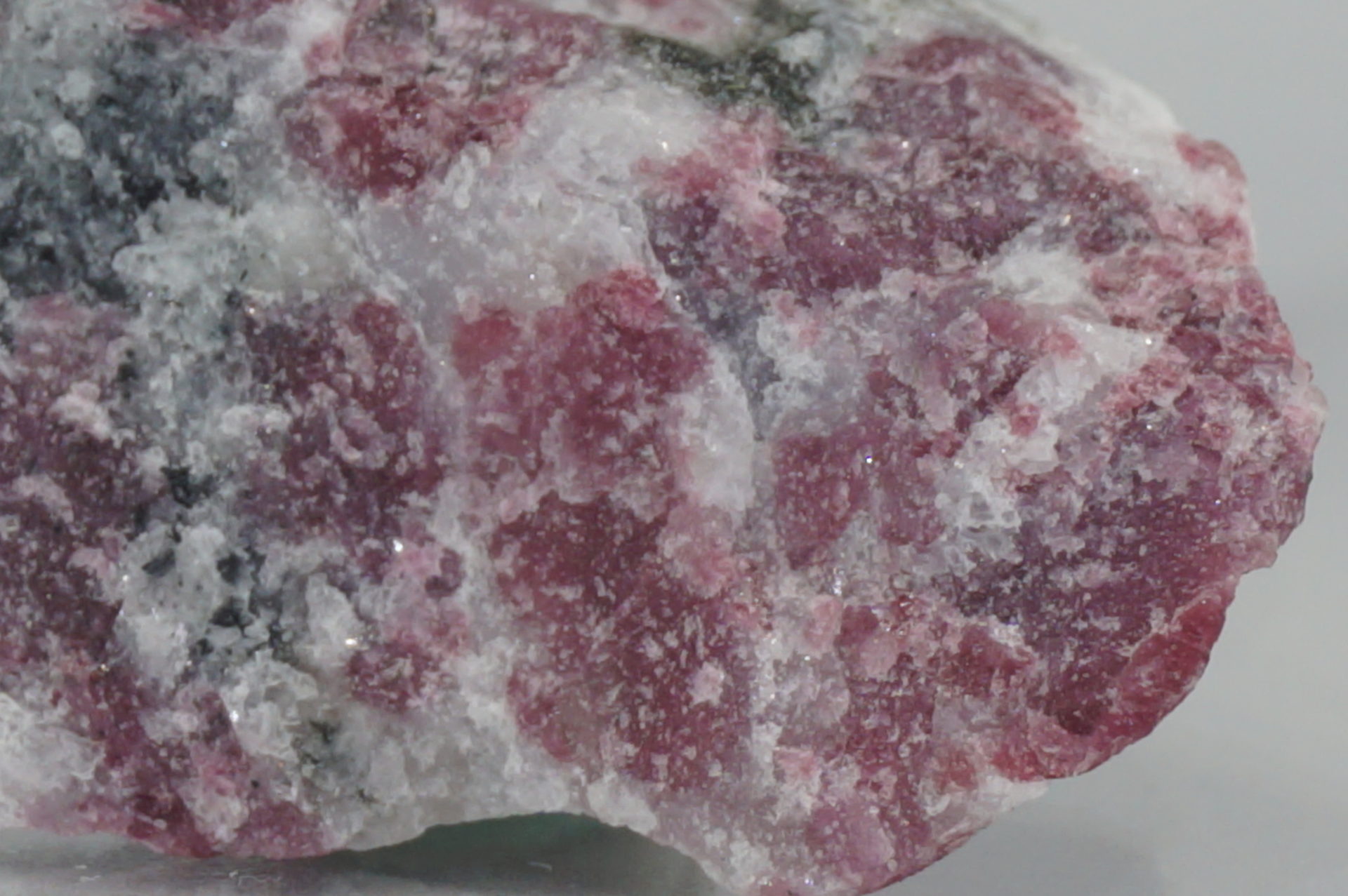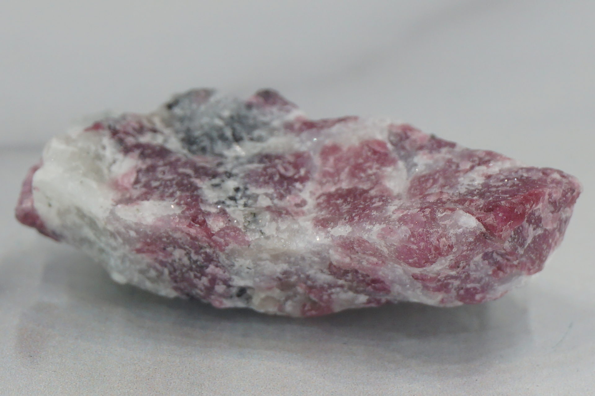 ピンクに近いワインレッドのユーディアライトが綺麗で、白い部分は石英