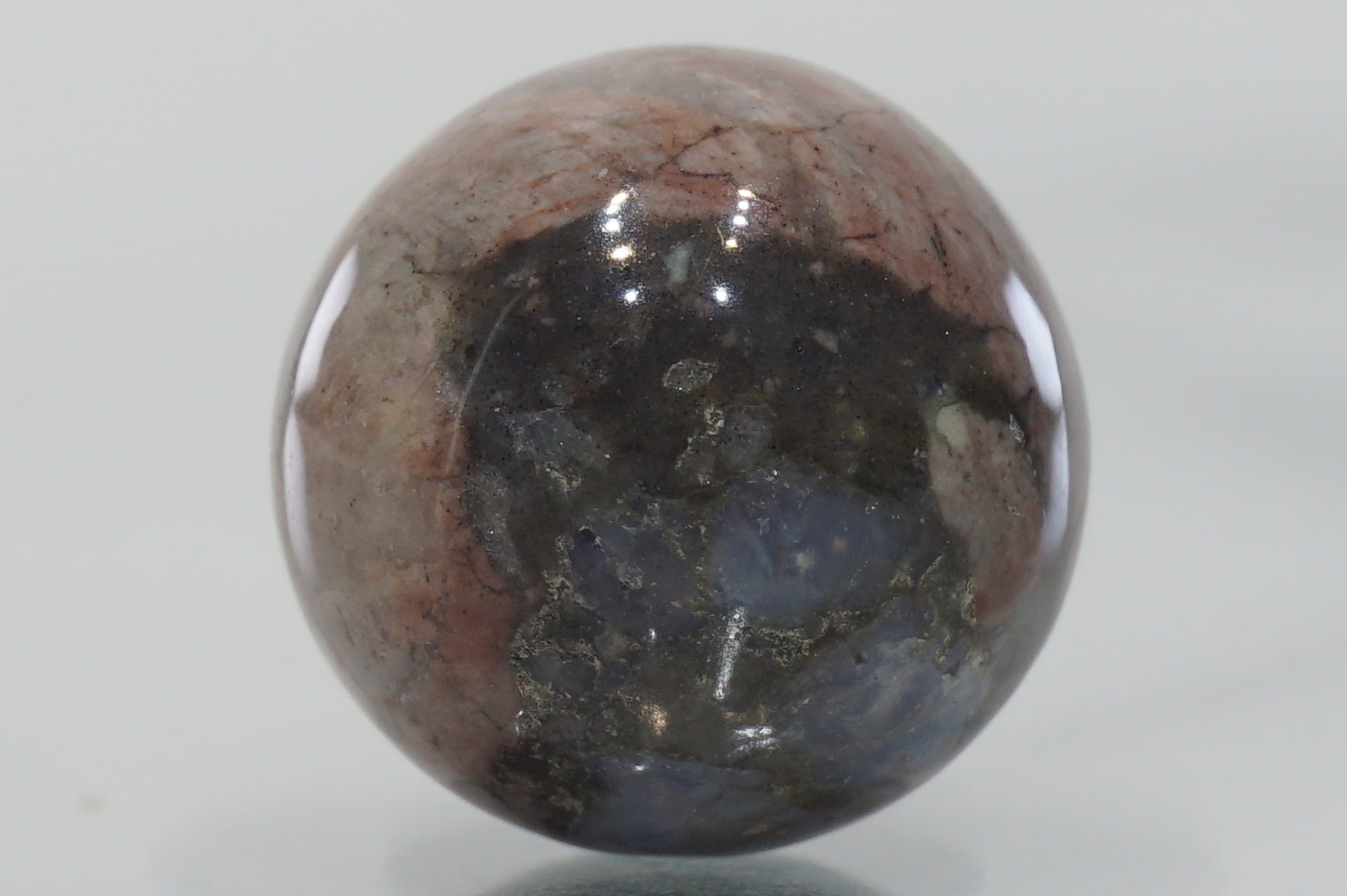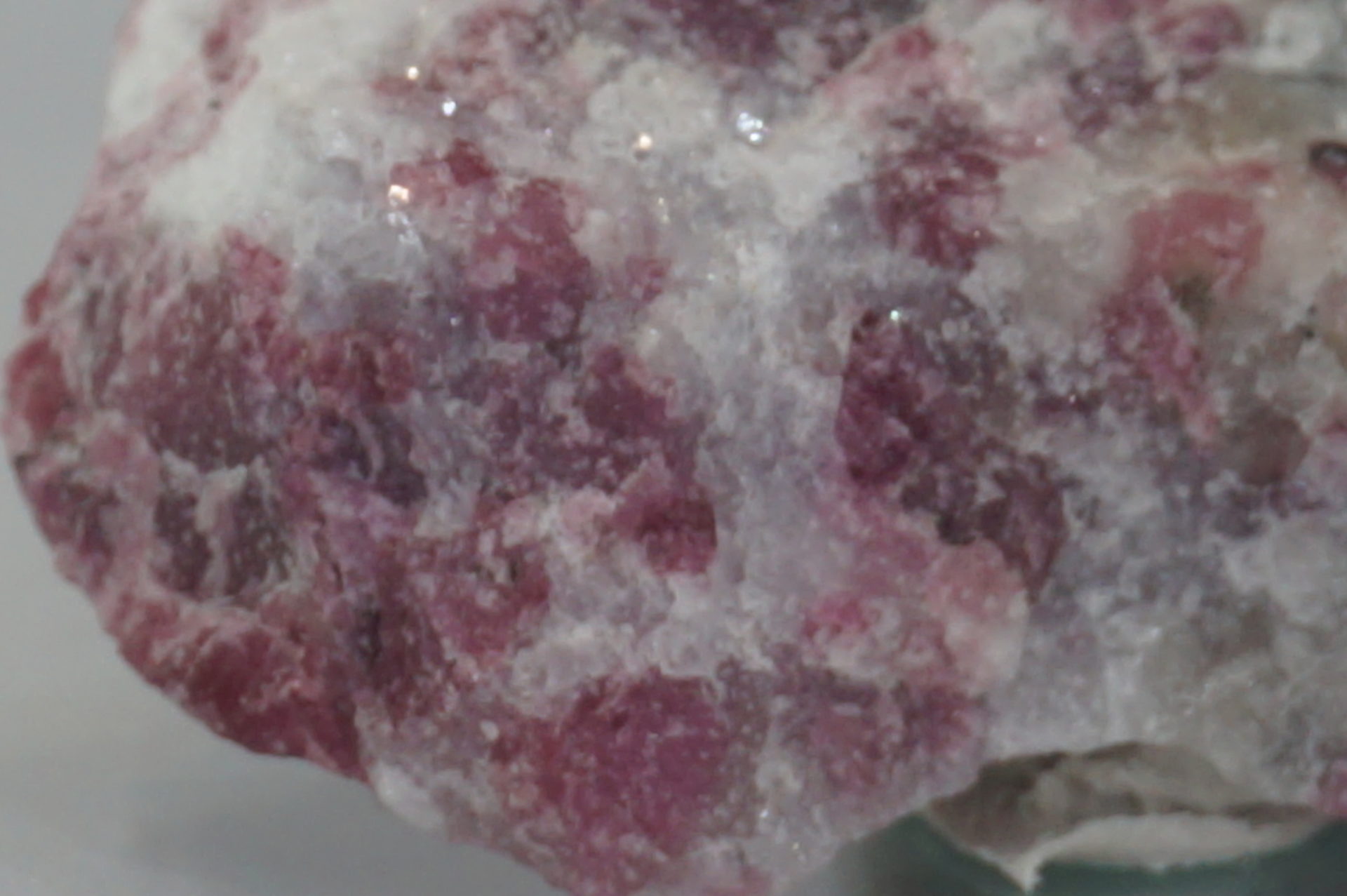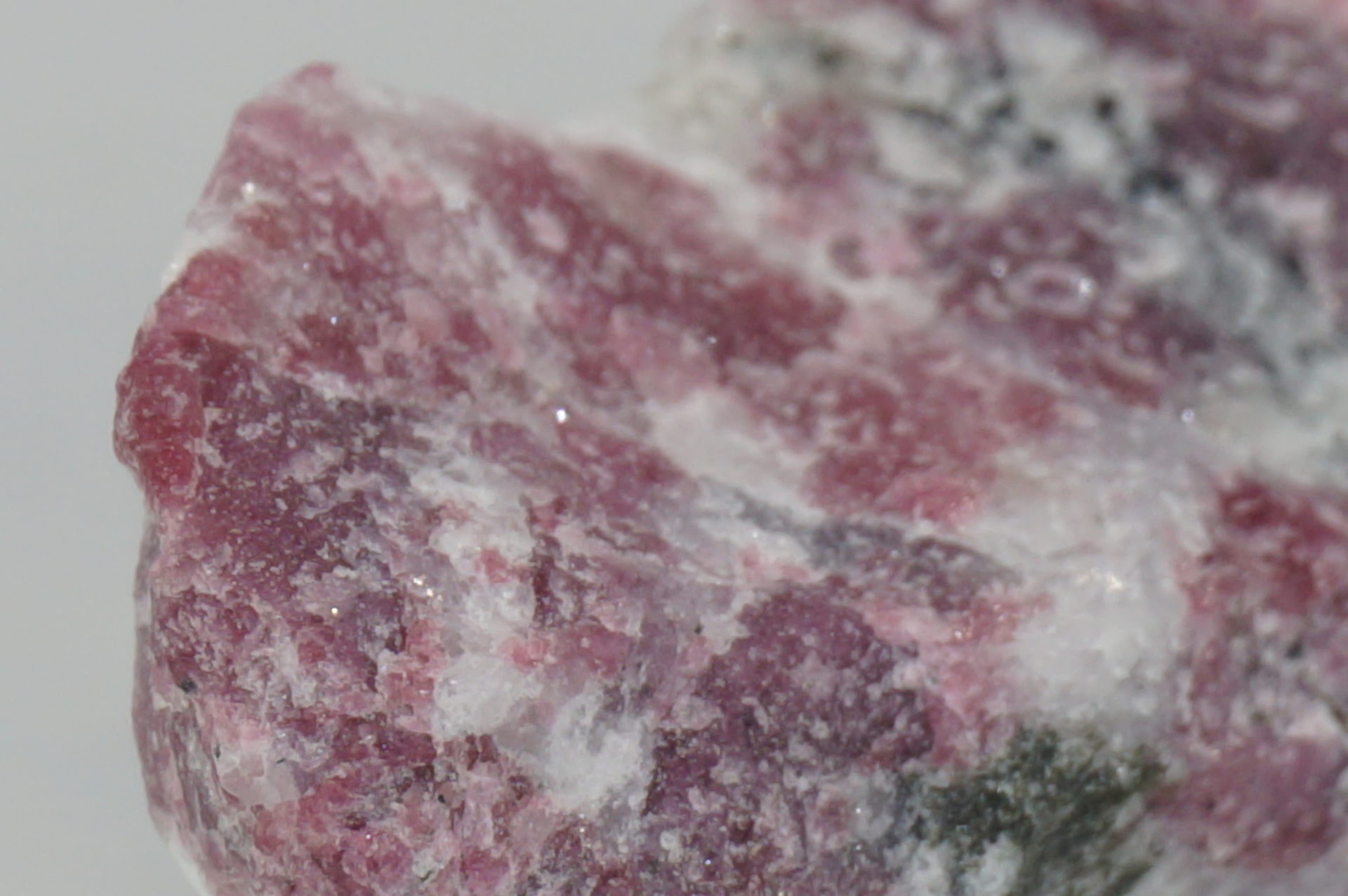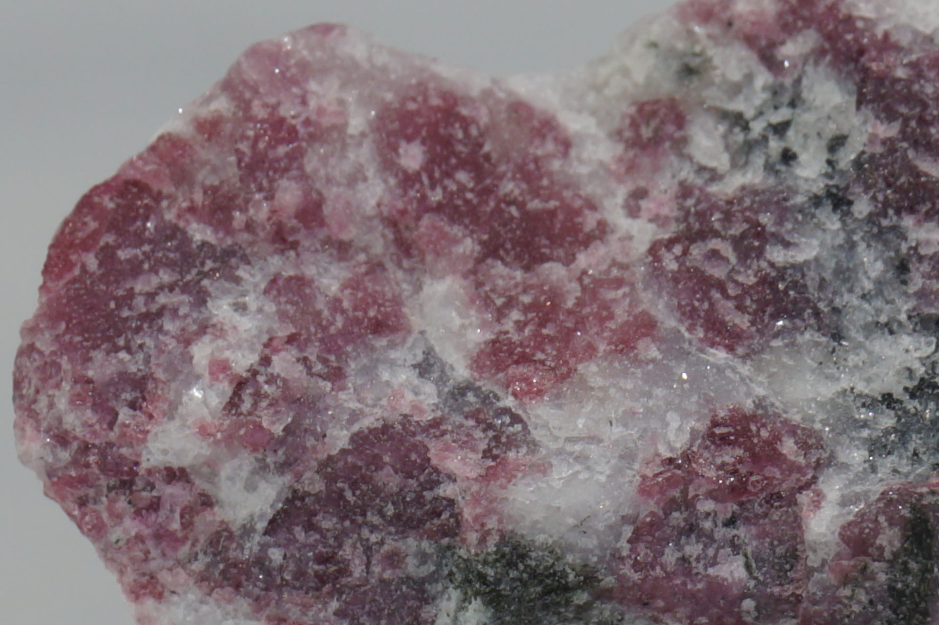 ピンクに近いワインレッドのユーディアライトが綺麗で、白い部分は石英