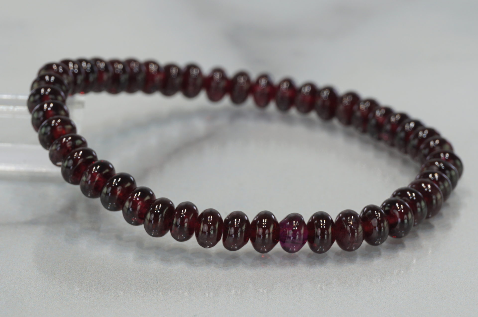 一粒、紫がかったロードライトガーネットのようなビーズが含まれます