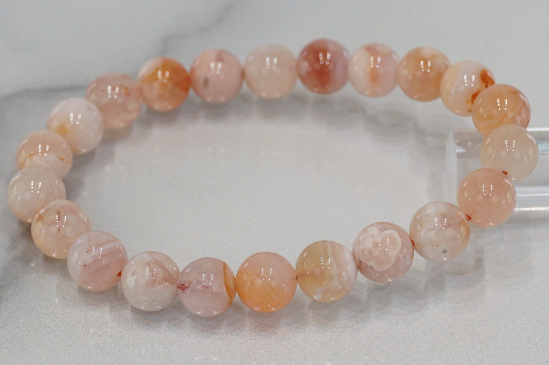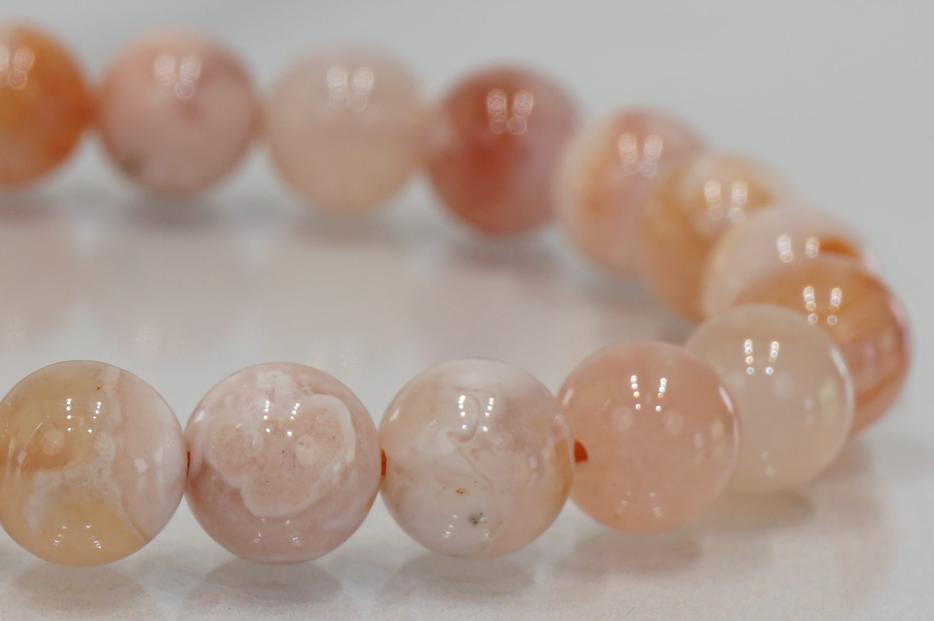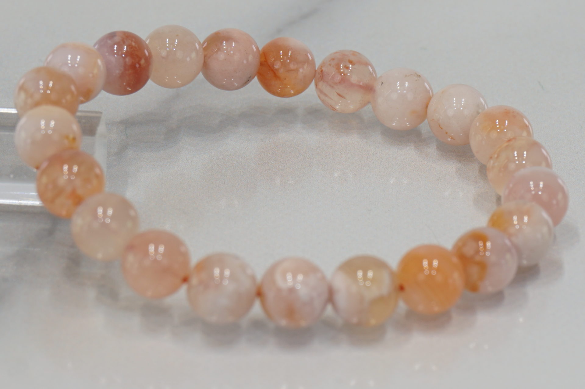 マダガスカル産チェリーブロッサムアゲートの約8mm玉ブレスレットです