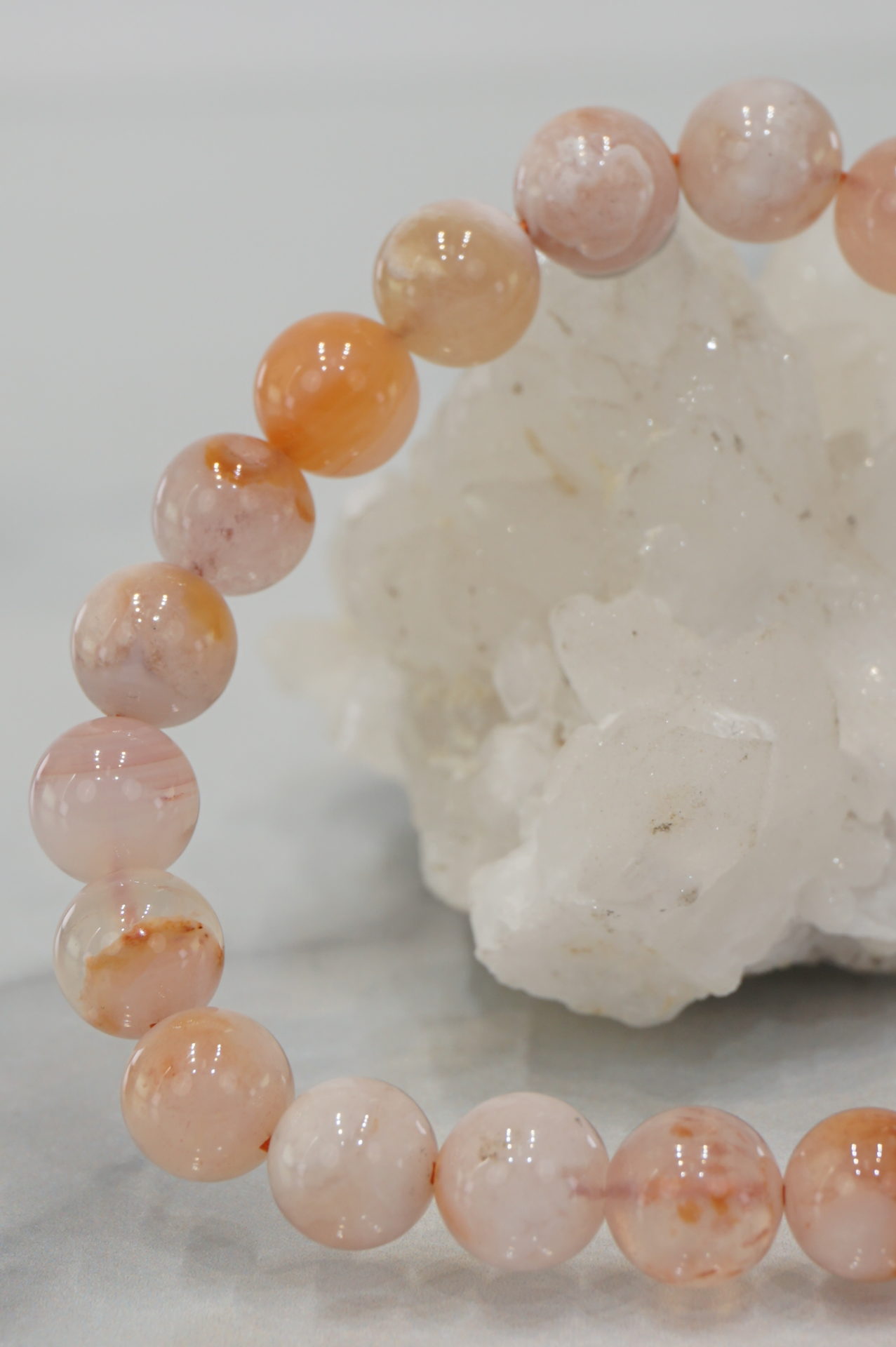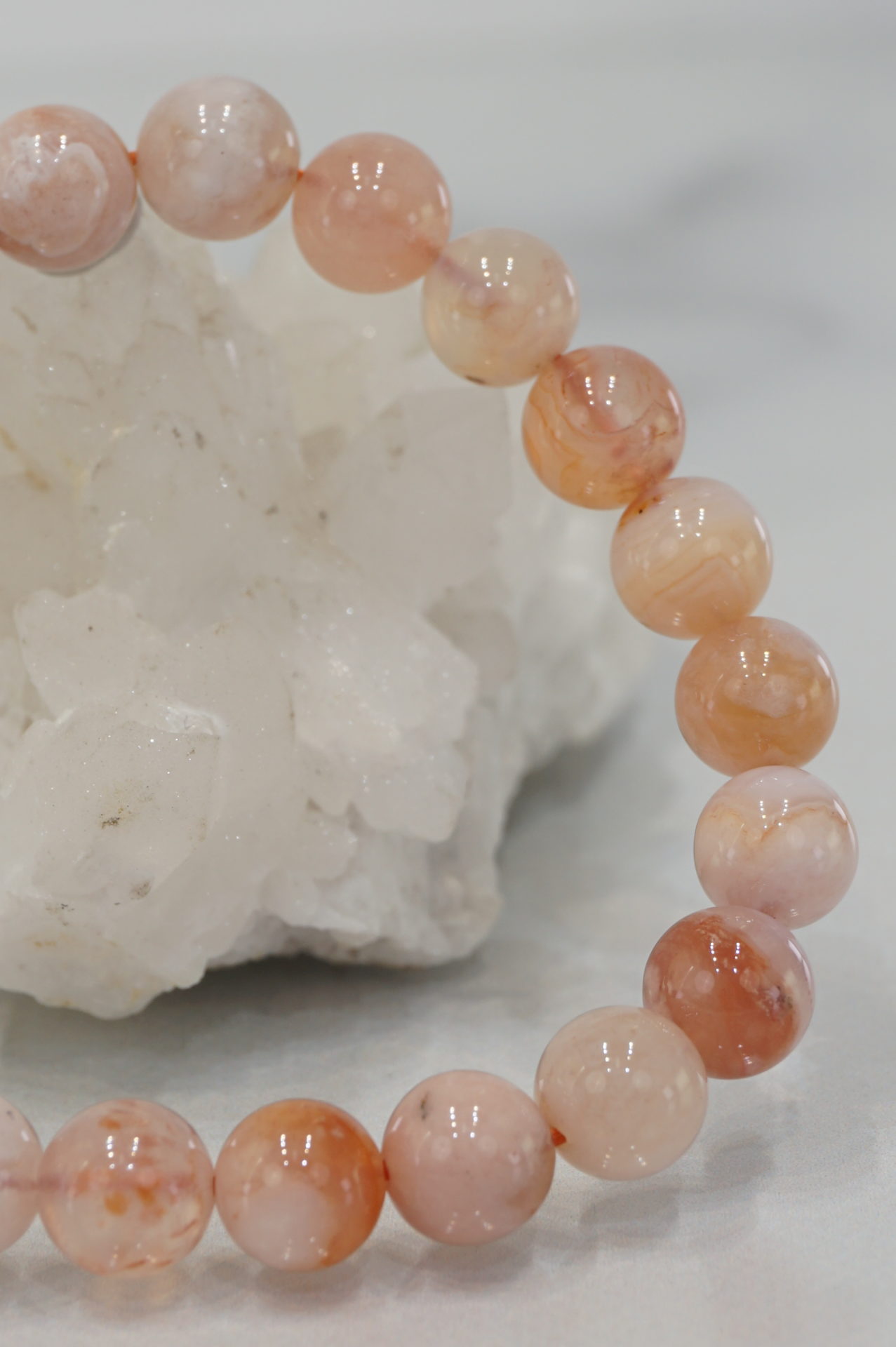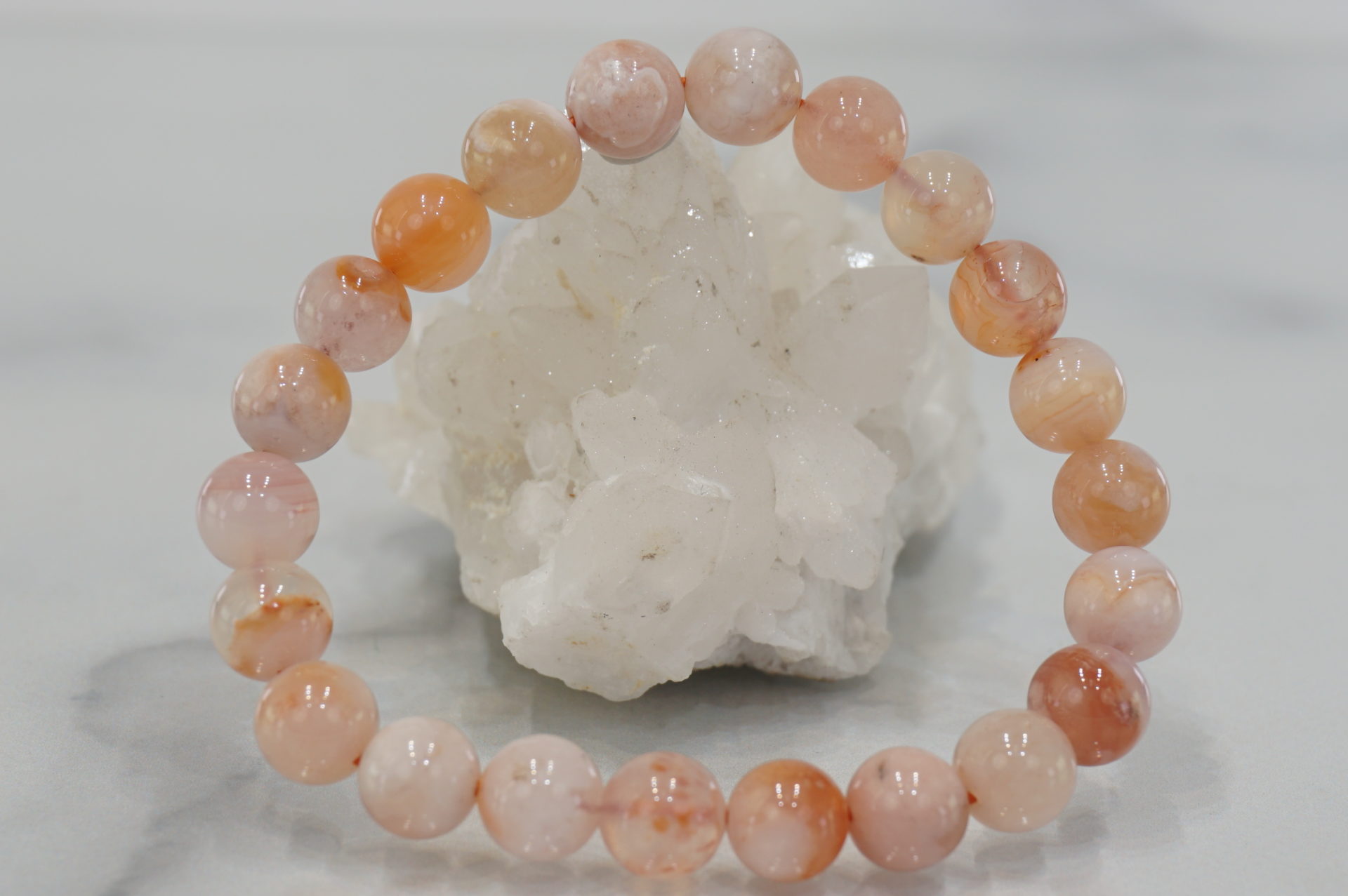 マダガスカル産チェリーブロッサムアゲートの約8mm玉ブレスレットです